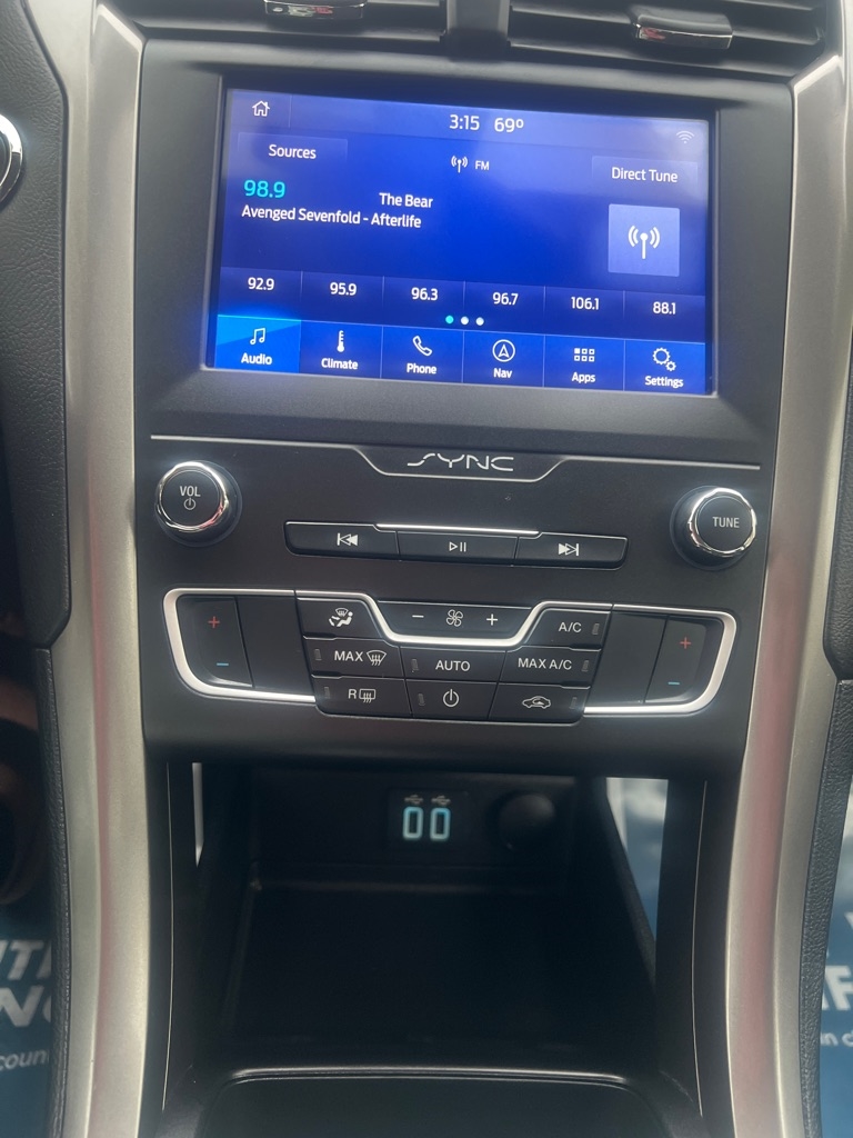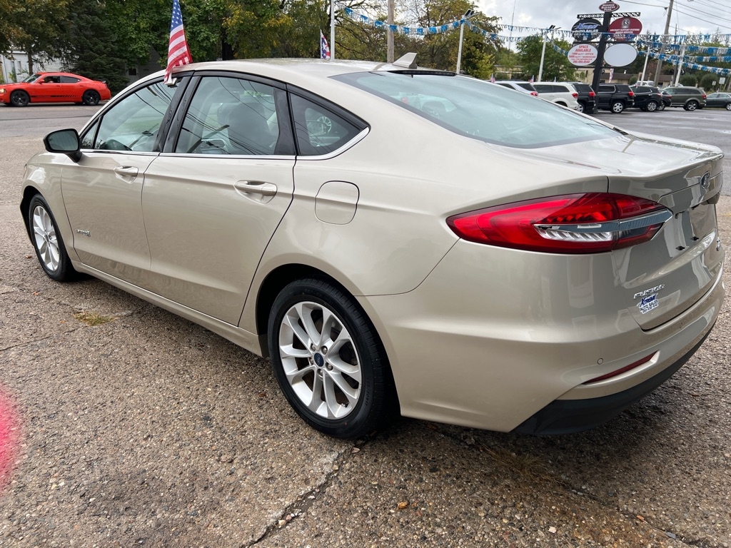 2019 Ford Fusion Hybrid SE FWD 4D Sedan 2.0 Hybrid Automatic Highbeams Auxiliary Audio Input Back-Up Camera Blind Spot Monitor Bluetooth Connection Cross-Traffic Alert Driver Monitoring Dual A/C Front Collision Mitigation Keyless Entry Keyless Start Lane Departure Warning Lane Keeping Assist MP3 Player Navigation System Power Driver Seat Power Passenger Seat Rear Parking Aid Satellite Radio Smart Device Integration Telematics WiFi Hotspot Front Bucket Seats Rear Bench Seat Driver Adjustable Lumbar Pass-Through Rear Seat Power Driver Seat Power Passenger Seat Options A/C ABS-Brakes Adaptive Cruise Control AM/FM Stereo Auto-Dimming Rearview Mirror Automatic Headlights Child Safety Locks Climate Control Cruise Control Daytime Running Lights Driver Air Bag Driver Illuminated Vanity Mirror Driver Restriction Features Driver Vanity Mirror Engine Immobilizer Floor Mats Front Head Air Bag Front Side Air Bag Knee Air Bag Passenger Air Bag Passenger Air Bag Sensor Passenger Illuminated Vanity Mirror Passenger Vanity Mirror Power Brakes Power Door Locks Power Mirror(s) Power Steering Power Windows Rain Sensing Wipers Rear Defrost Rear Head Air Bag Remote Trunk Release Security System Stability Control Steering Wheel Audio Controls Tilt Steering Wheel Tire Pressure Monitor Traction Control Trip Computer Variable Speed Intermittent Wipers