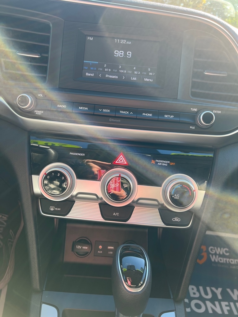 2019 Hyundai Elantra SE FWD 4D Sedan at 2.0 4cyl. Gasoline Auxiliary Audio Input Back-Up Camera Bluetooth Connection Keyless Entry MP3 Player Front Bucket Seats Rear Bench Seat Pass-Through Rear Seat Options A/C ABS-Brakes AM/FM Stereo Child Safety Locks Cruise Control Daytime Running Lights Driver Air Bag Driver Vanity Mirror Floor Mats Front Head Air Bag Front Side Air Bag Knee Air Bag Passenger Air Bag Passenger Air Bag Sensor Passenger Vanity Mirror Power Brakes Power Door Locks Power Mirror(s) Power Steering Power Windows Rear Defrost Rear Head Air Bag Remote Trunk Release Security System Stability Control Steering Wheel Audio Controls Tilt Steering Wheel Tire Pressure Monitor Traction Control Transmission w/Dual Shift Mode Trip Computer Variable Speed Intermittent Wipers