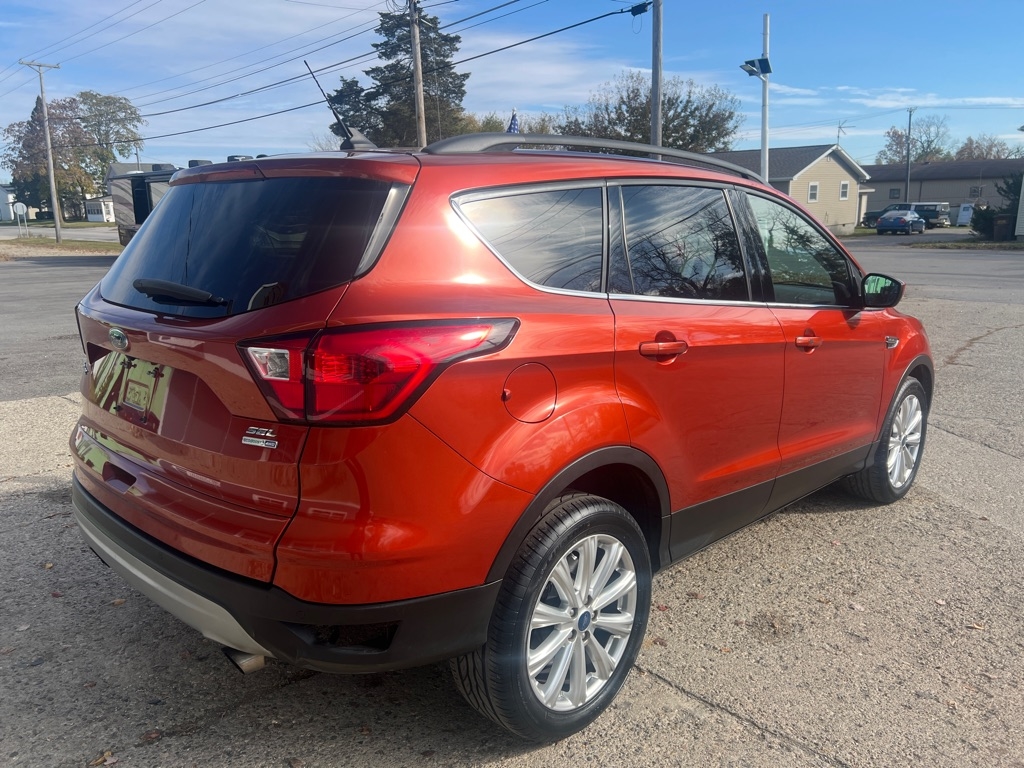 2019 Ford Escape SEL 4WD 4D SUV 1.5 4cyl. Gasoline Auxiliary Audio Input Back-Up Camera Bluetooth Connection Dual A/C Heated Front Seat Heated Mirrors Keyless Entry Keyless Start MP3 Player Power Driver Seat Power Liftgate Privacy Glass Rear Parking Aid Satellite Radio Smart Device Integration Telematics WiFi Hotspot Front Bucket Seats Rear Bench Seat Driver Adjustable Lumbar Heated Front Seat Pass-Through Rear Seat Power Driver Seat Options A/C ABS-Brakes AM/FM Stereo Automatic Headlights Child Safety Locks Climate Control Cruise Control Daytime Running Lights Driver Air Bag Driver Illuminated Vanity Mirror Driver Restriction Features Driver Vanity Mirror Engine Immobilizer Floor Mats Fog Lamps Front Head Air Bag Front Side Air Bag Knee Air Bag Leather Steering Wheel Passenger Air Bag Passenger Air Bag Sensor Passenger Illuminated Vanity Mirror Passenger Vanity Mirror Power Brakes Power Door Locks Power Mirror(s) Power Steering Power Windows Rear Defrost Rear Head Air Bag Remote Trunk Release Security System Stability Control Steering Wheel Audio Controls Tilt Steering Wheel Tire Pressure Monitor Traction Control Transmission w/Dual Shift Mode Trip Computer Variable Speed Intermittent Wipers