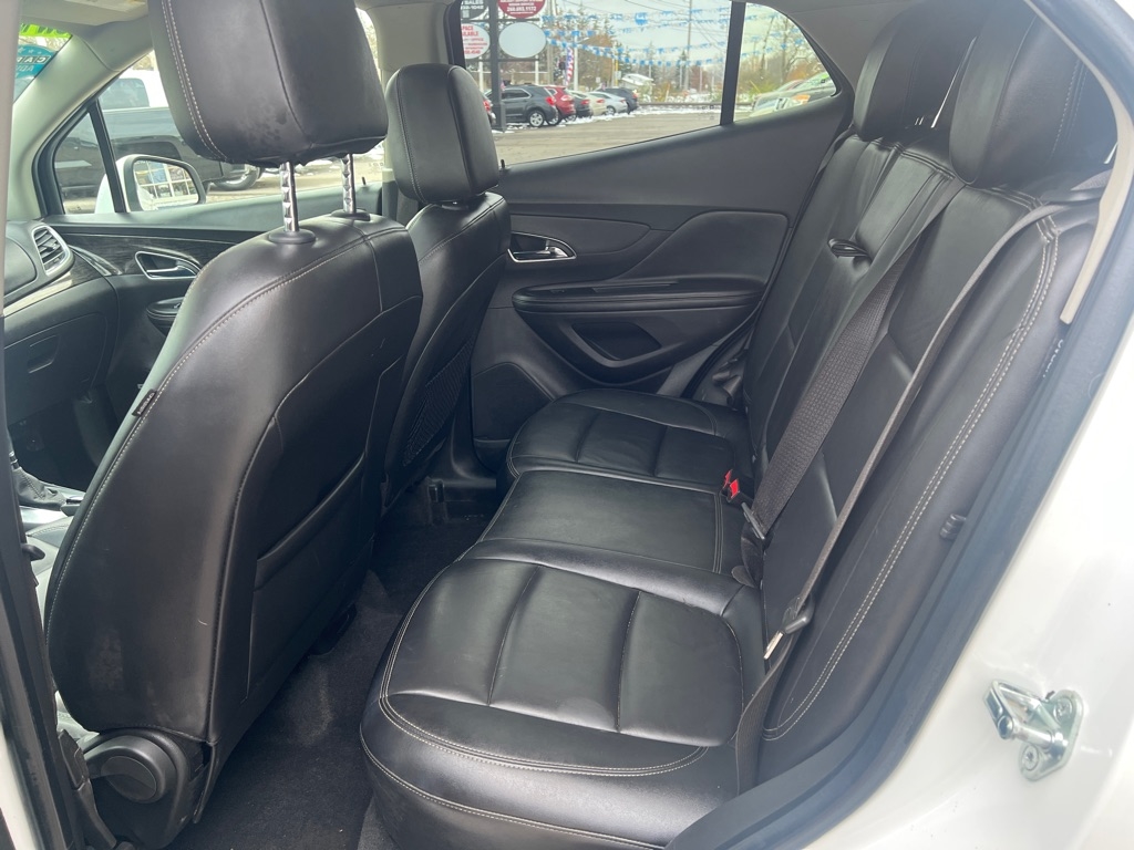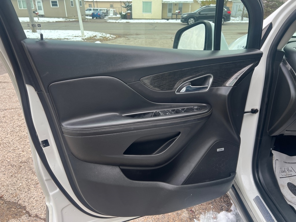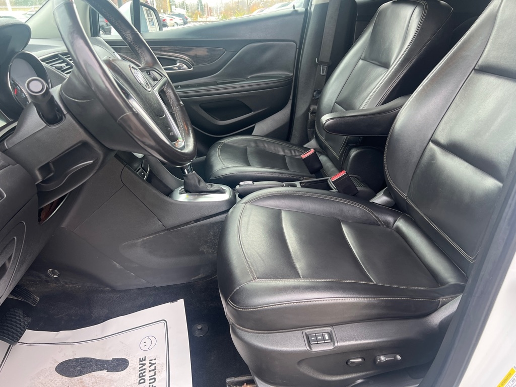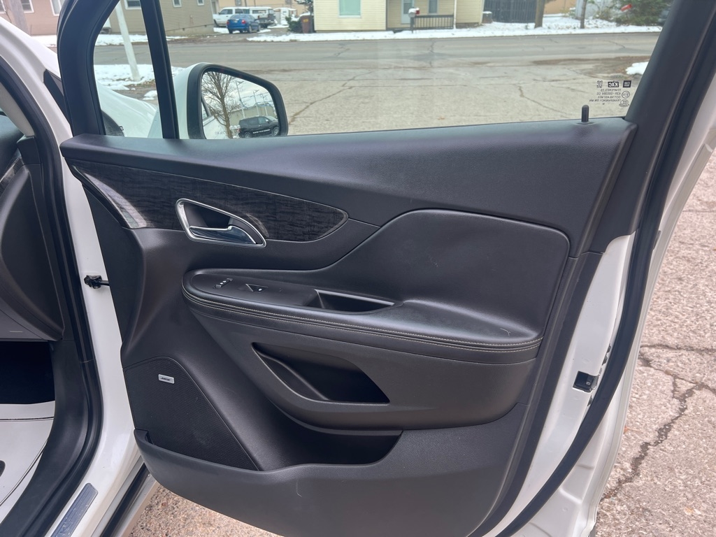 2015 Buick Encore Premium FWD 4D SUV 1.4 4cyl. Gasoline Auxiliary Audio Input Bluetooth Connection Leather MP3 Player Navigation System Satellite Radio Sun/Moonroof Value Added Options - Standard Back-Up Camera Blind Spot Monitor Cross-Traffic Alert Dual A/C Front Collision Warning Heated Front Seat Heated Mirrors Keyless Entry Keyless Start Lane Departure Warning Power Driver Seat Power Passenger Seat Premium Sound System Privacy Glass Rear Parking Aid Seat Memory Telematics WiFi Hotspot Front Bucket Seats Rear Bench Seat Driver Adjustable Lumbar Heated Front Seat Pass-Through Rear Seat Passenger Adjustable Lumbar Power Driver Seat Power Passenger Seat Seat Memory 5 Passenger Capacity Options A/C ABS-Brakes AM/FM Stereo Auto-Dimming Rearview Mirror Automatic Headlights Cargo Shade CD Player Child Safety Locks Climate Control Cruise Control Daytime Running Lights Driver Air Bag Driver Illuminated Vanity Mirror Driver Vanity Mirror Engine Immobilizer Floor Mats Fog Lamps Front Head Air Bag Front Side Air Bag Heated Steering Wheel Integrated Turn Signal Mirrors Knee Air Bag Leather Steering Wheel Navigation from Telematics Passenger Air Bag Passenger Air Bag Sensor Passenger Illuminated Vanity Mirror Passenger Vanity Mirror Power Brakes Power Door Locks Power Mirror(s) Power Steering Power Windows Rain Sensing Wipers Rear Defrost Rear Head Air Bag Rear Side Air Bag Security System Stability Control