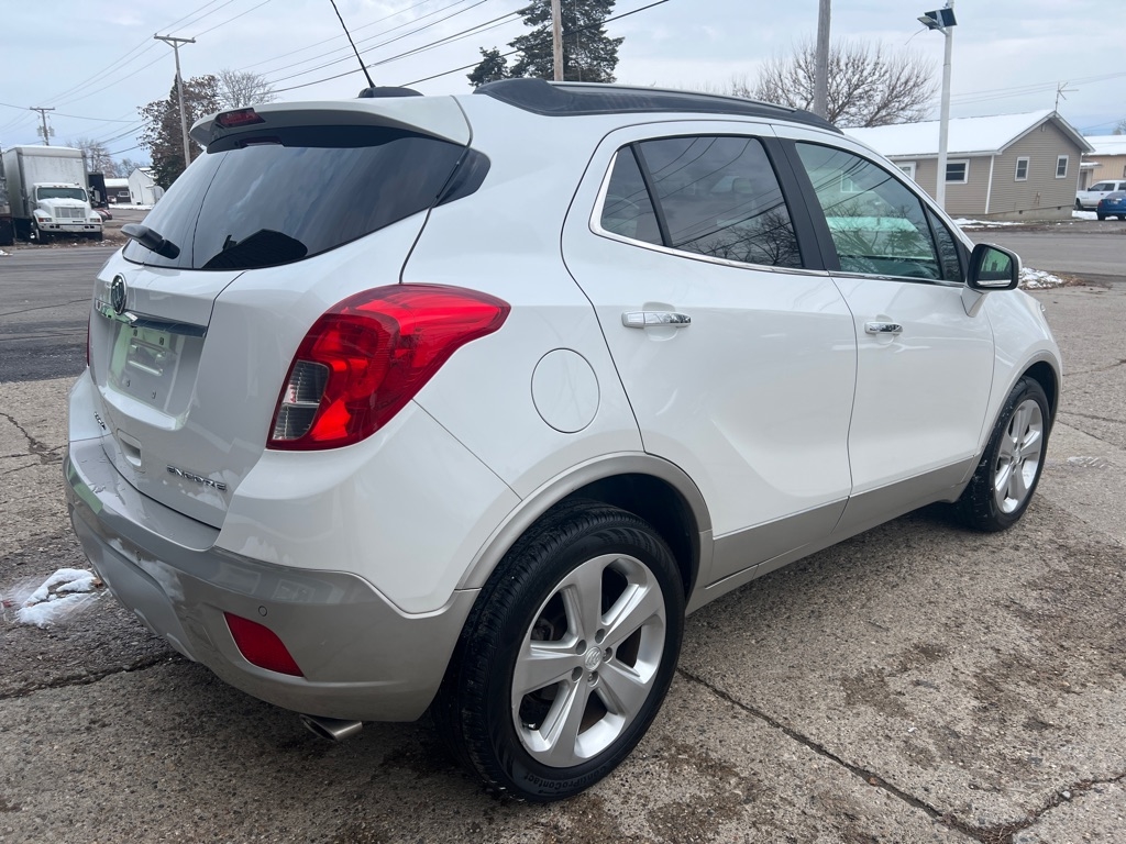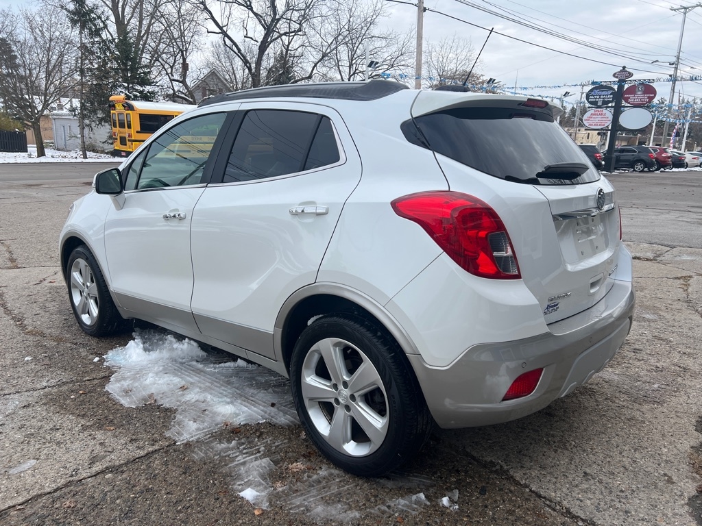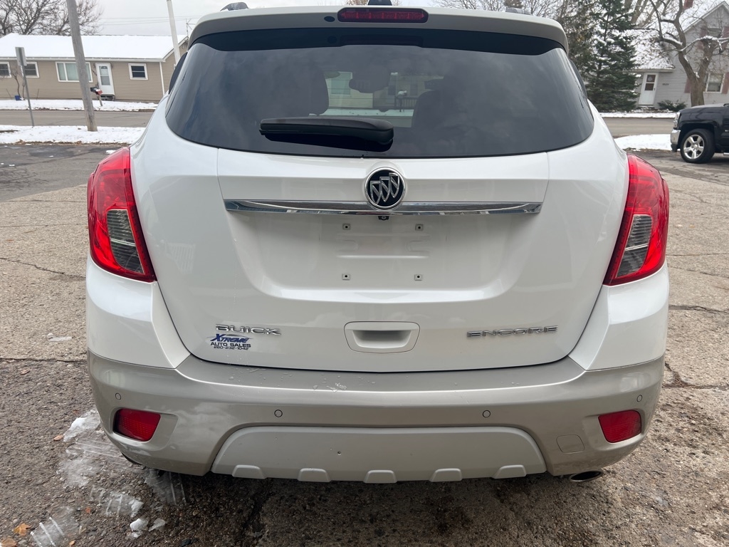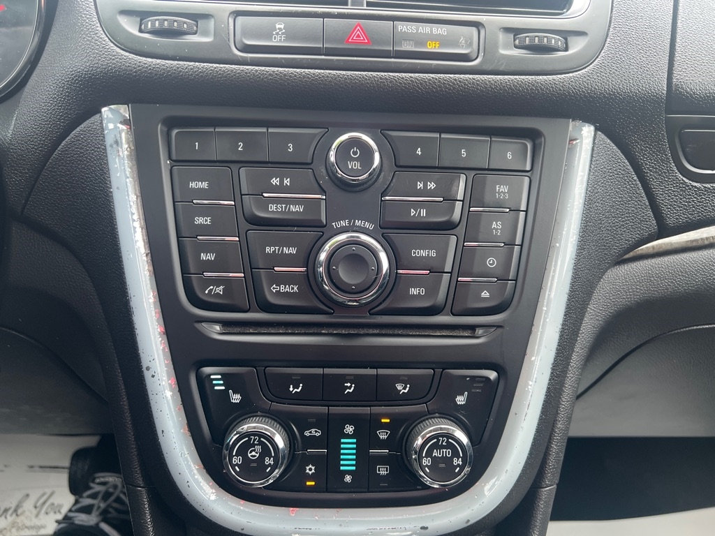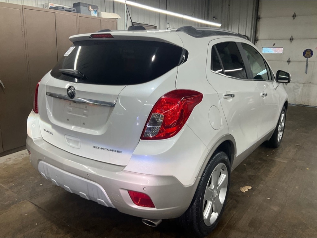 2015 Buick Encore Premium FWD 4D SUV 1.4 4cyl. Gasoline Auxiliary Audio Input Bluetooth Connection Leather MP3 Player Navigation System Satellite Radio Sun/Moonroof Value Added Options - Standard Back-Up Camera Blind Spot Monitor Cross-Traffic Alert Dual A/C Front Collision Warning Heated Front Seat Heated Mirrors Keyless Entry Keyless Start Lane Departure Warning Power Driver Seat Power Passenger Seat Premium Sound System Privacy Glass Rear Parking Aid Seat Memory Telematics WiFi Hotspot Front Bucket Seats Rear Bench Seat Driver Adjustable Lumbar Heated Front Seat Pass-Through Rear Seat Passenger Adjustable Lumbar Power Driver Seat Power Passenger Seat Seat Memory 5 Passenger Capacity Options A/C ABS-Brakes AM/FM Stereo Auto-Dimming Rearview Mirror Automatic Headlights Cargo Shade CD Player Child Safety Locks Climate Control Cruise Control Daytime Running Lights Driver Air Bag Driver Illuminated Vanity Mirror Driver Vanity Mirror Engine Immobilizer Floor Mats Fog Lamps Front Head Air Bag Front Side Air Bag Heated Steering Wheel Integrated Turn Signal Mirrors Knee Air Bag Leather Steering Wheel Navigation from Telematics Passenger Air Bag Passenger Air Bag Sensor Passenger Illuminated Vanity Mirror Passenger Vanity Mirror Power Brakes Power Door Locks Power Mirror(s) Power Steering Power Windows Rain Sensing Wipers Rear Defrost Rear Head Air Bag Rear Side Air Bag Security System Stability Control