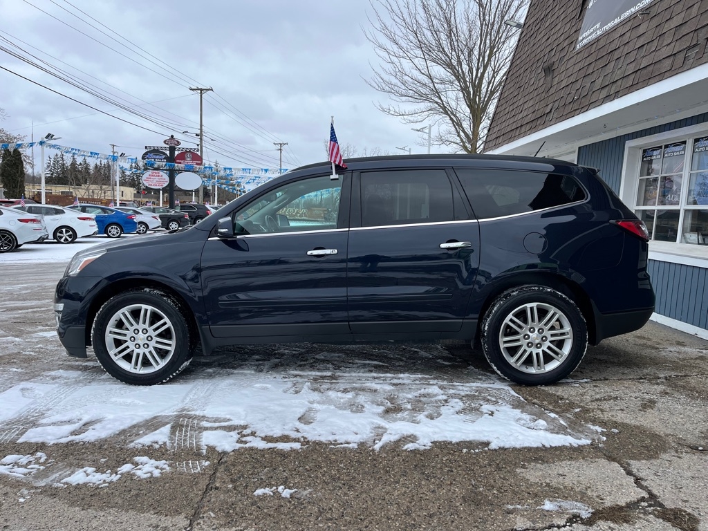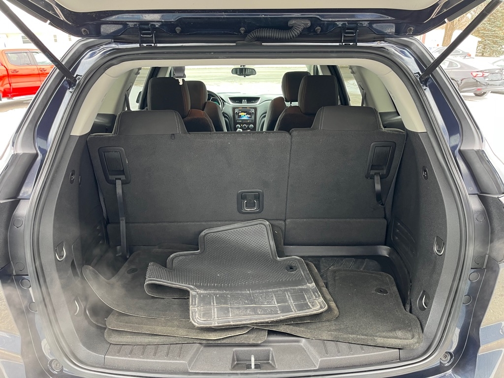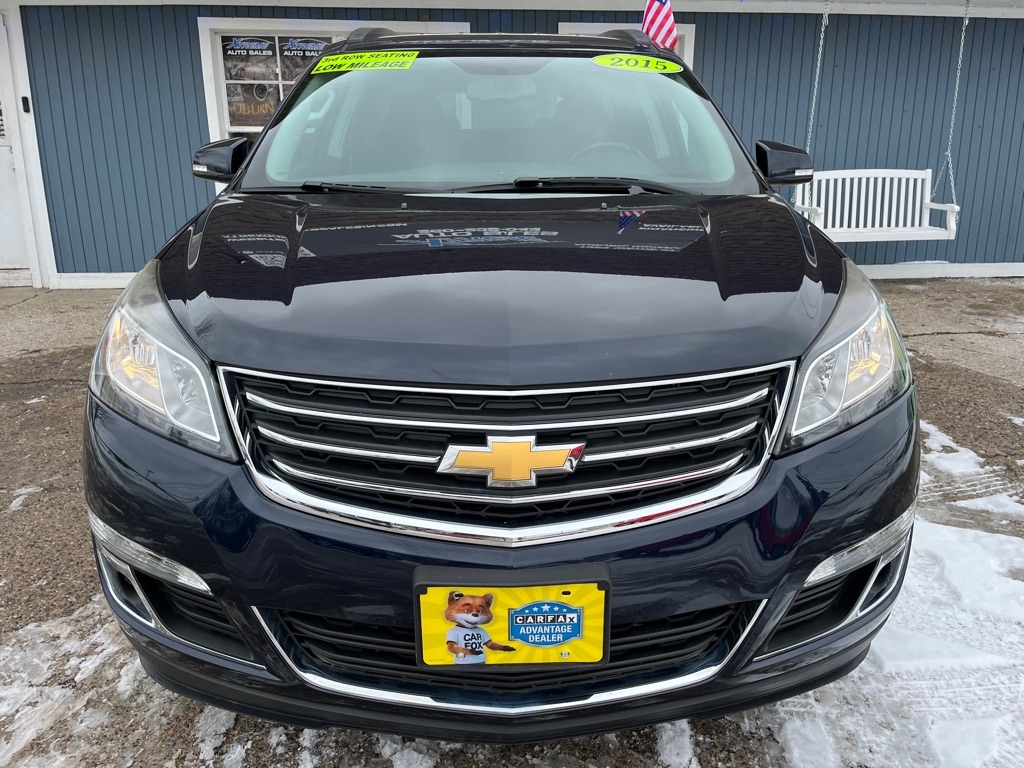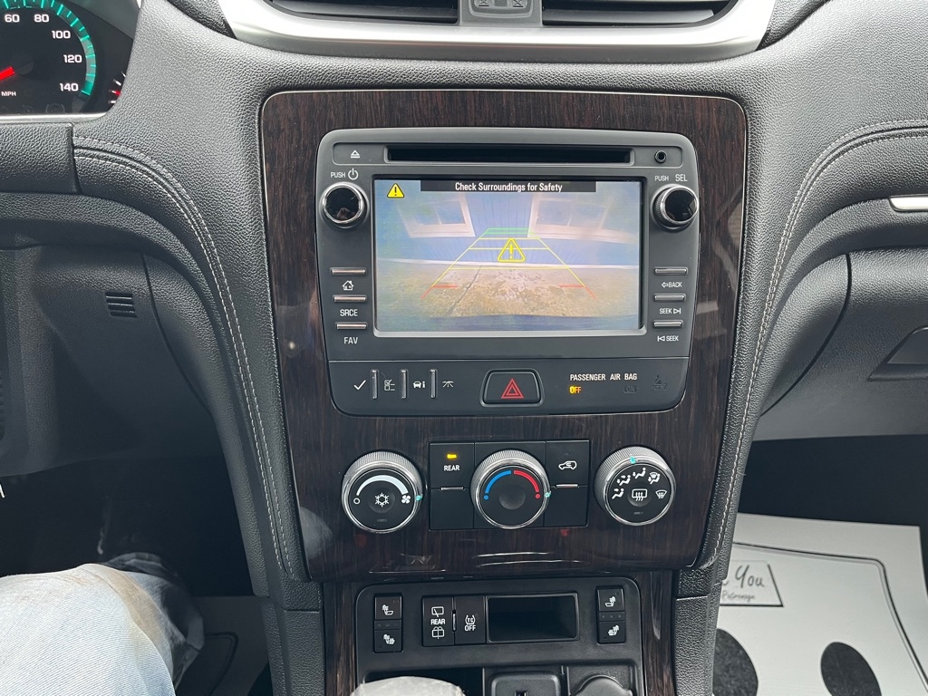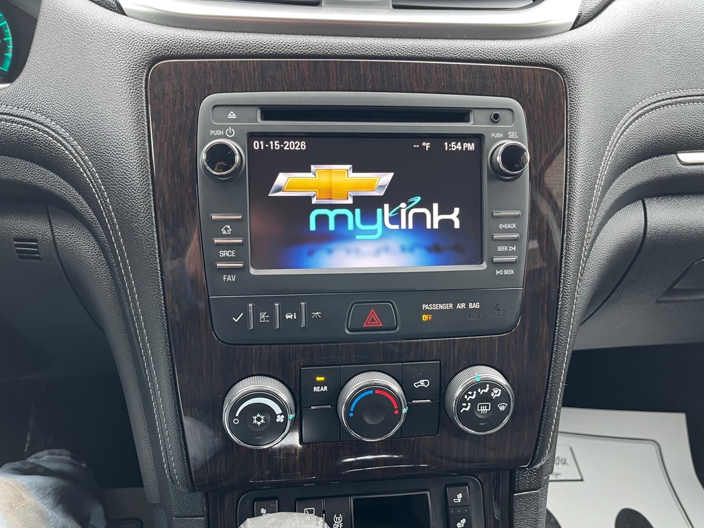 2015 Chevrolet Traverse LT FWD 4D SUV 3.6 6cyl. Gasoline 3rd Row Seat Auxiliary Audio Input Bluetooth Connection Heated Front Seat MP3 Player Rear Bucket Seats Satellite Radio Smart Device Integration Value Added Options - Standard Back-Up Camera Heated Mirrors Keyless Entry Keyless Start Power Driver Seat Privacy Glass Rear A/C Rear Parking Aid Telematics Front Bucket Seats 3rd Row Seat Rear Bucket Seats Driver Adjustable Lumbar Heated Front Seat Pass-Through Rear Seat Power Driver Seat Woodgrain Interior Trim 7 Passenger Capacity Options A/C ABS-Brakes AM/FM Stereo Automatic Headlights CD Player Child Safety Locks Cruise Control Daytime Running Lights Driver Air Bag Driver Illuminated Vanity Mirror Driver Vanity Mirror Floor Mats Fog Lamps Front Head Air Bag Front Reading Lamps Front Side Air Bag Integrated Turn Signal Mirrors Leather Steering Wheel Navigation from Telematics Passenger Air Bag Passenger Air Bag Sensor Passenger Illuminated Vanity Mirror Passenger Vanity Mirror Power Brakes Power Door Locks Power Mirror(s) Power Steering Power Windows Rear Defrost Rear Head Air Bag Rear Reading Lamps Rear Spoiler Stability Control Steering Wheel Audio Controls Tilt Steering Wheel Tire Pressure Monitor Traction Control Trip Computer Universal Garage Door Opener