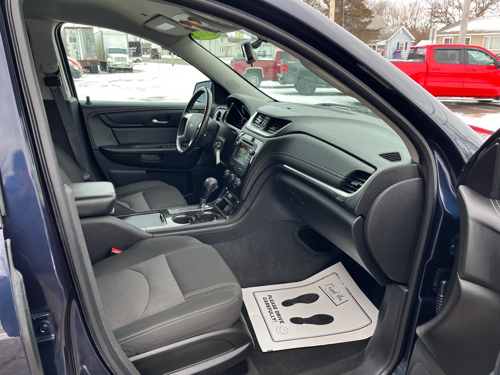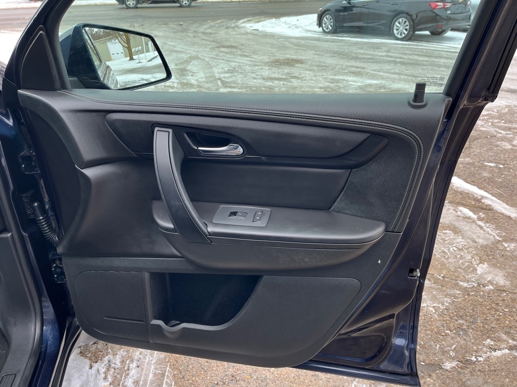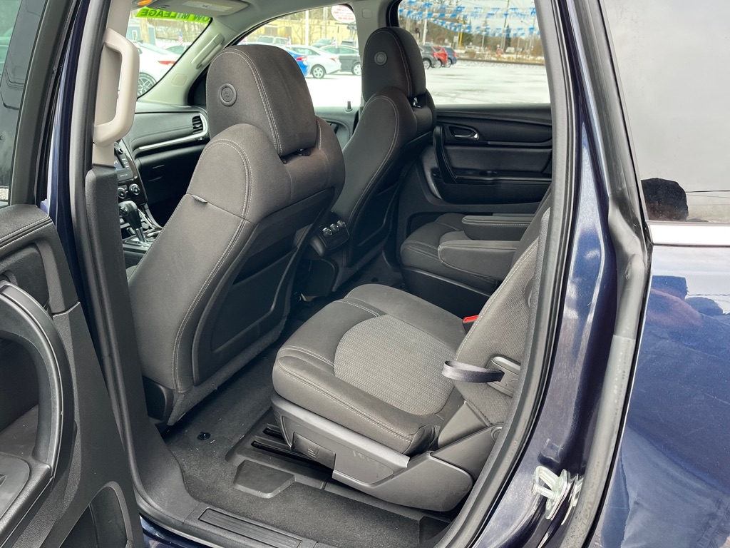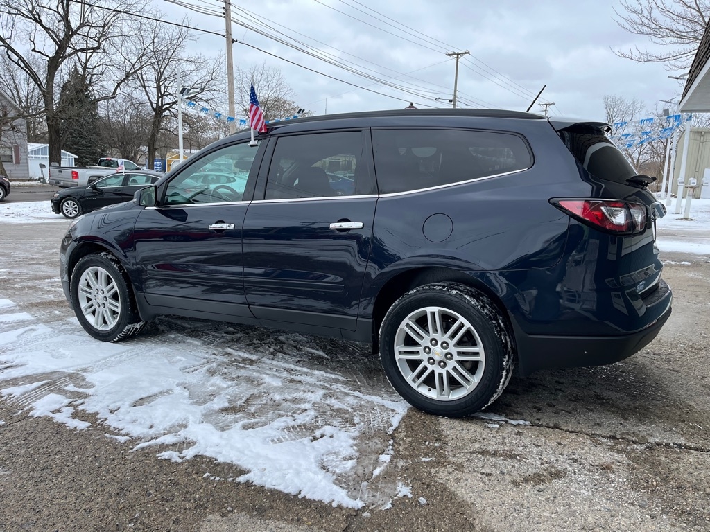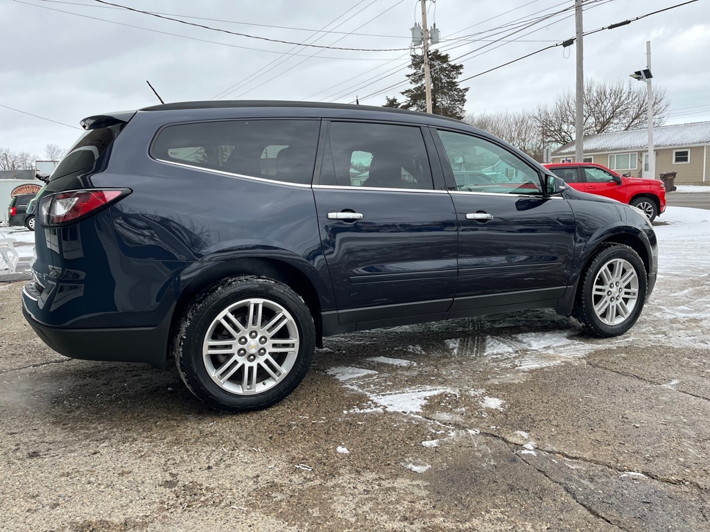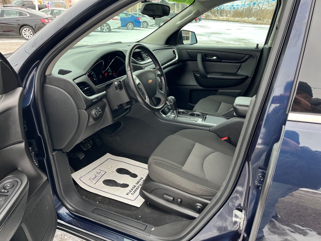2015 Chevrolet Traverse LT FWD 4D SUV 3.6 6cyl. Gasoline 3rd Row Seat Auxiliary Audio Input Bluetooth Connection Heated Front Seat MP3 Player Rear Bucket Seats Satellite Radio Smart Device Integration Value Added Options - Standard Back-Up Camera Heated Mirrors Keyless Entry Keyless Start Power Driver Seat Privacy Glass Rear A/C Rear Parking Aid Telematics Front Bucket Seats 3rd Row Seat Rear Bucket Seats Driver Adjustable Lumbar Heated Front Seat Pass-Through Rear Seat Power Driver Seat Woodgrain Interior Trim 7 Passenger Capacity Options A/C ABS-Brakes AM/FM Stereo Automatic Headlights CD Player Child Safety Locks Cruise Control Daytime Running Lights Driver Air Bag Driver Illuminated Vanity Mirror Driver Vanity Mirror Floor Mats Fog Lamps Front Head Air Bag Front Reading Lamps Front Side Air Bag Integrated Turn Signal Mirrors Leather Steering Wheel Navigation from Telematics Passenger Air Bag Passenger Air Bag Sensor Passenger Illuminated Vanity Mirror Passenger Vanity Mirror Power Brakes Power Door Locks Power Mirror(s) Power Steering Power Windows Rear Defrost Rear Head Air Bag Rear Reading Lamps Rear Spoiler Stability Control Steering Wheel Audio Controls Tilt Steering Wheel Tire Pressure Monitor Traction Control Trip Computer Universal Garage Door Opener
