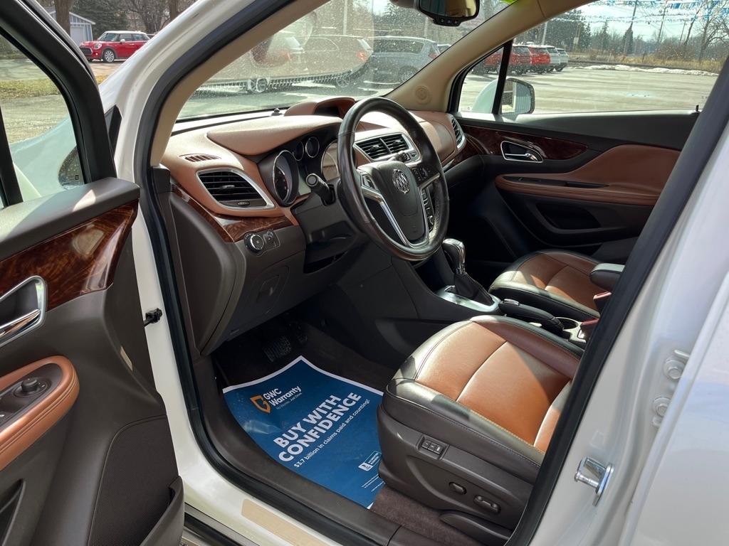 2016 Buick Encore Leather AWD 4D SUV 1.4 4cyl. Gasoline Auxiliary Audio Input Bluetooth Connection Leather MP3 Player Satellite Radio Value Added Options - Standard Back-Up Camera Blind Spot Monitor Cross-Traffic Alert Dual A/C Heated Front Seat Heated Mirrors Keyless Entry Keyless Start Power Driver Seat Power Passenger Seat Privacy Glass Seat Memory Smart Device Integration Telematics WiFi Hotspot Front Bucket Seats Rear Bench Seat Driver Adjustable Lumbar Heated Front Seat Pass-Through Rear Seat Passenger Adjustable Lumbar Power Driver Seat Power Passenger Seat Seat Memory 5 Passenger Capacity Options A/C ABS-Brakes AM/FM Stereo Auto-Dimming Rearview Mirror Automatic Headlights Cargo Shade CD Player Child Safety Locks Climate Control Cruise Control Daytime Running Lights Driver Air Bag Driver Illuminated Vanity Mirror Driver Vanity Mirror Engine Immobilizer Floor Mats Fog Lamps Front Head Air Bag Front Side Air Bag Heated Steering Wheel Integrated Turn Signal Mirrors Knee Air Bag Leather Steering Wheel Navigation from Telematics Passenger Air Bag Passenger Air Bag Sensor Passenger Illuminated Vanity Mirror Passenger Vanity Mirror Power Brakes Power Door Locks Power Mirror(s) Power Steering Power Windows Rear Defrost Rear Head Air Bag Rear Side Air Bag Security System Stability Control Steering Wheel Audio Controls Tilt Steering Wheel Tire Pressure Monitor Traction Control Transmission w/Dual Shift M
