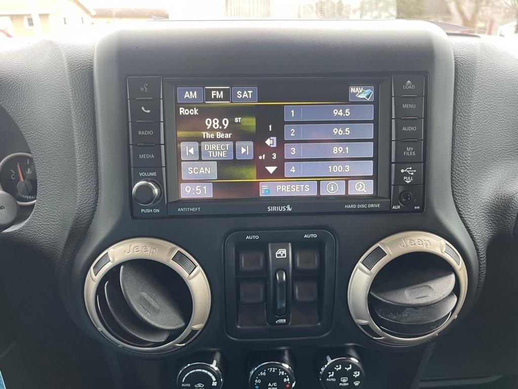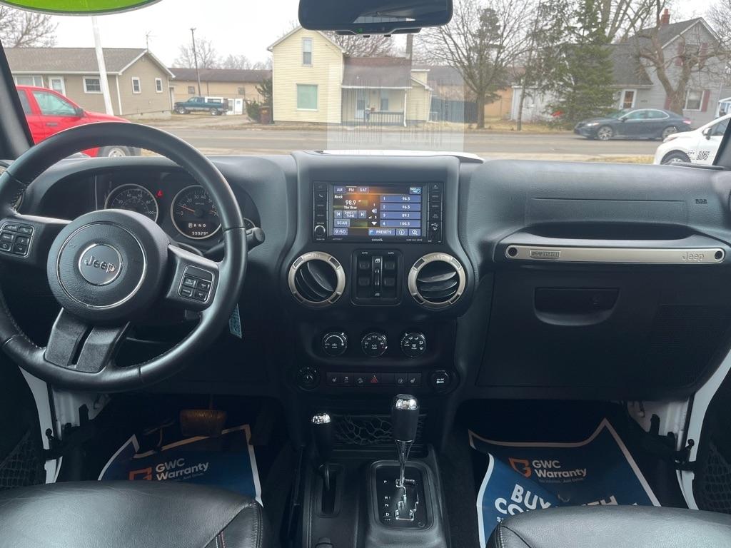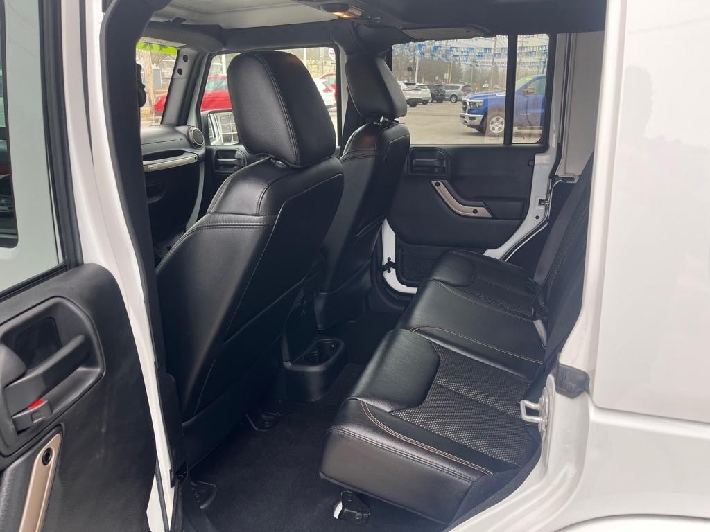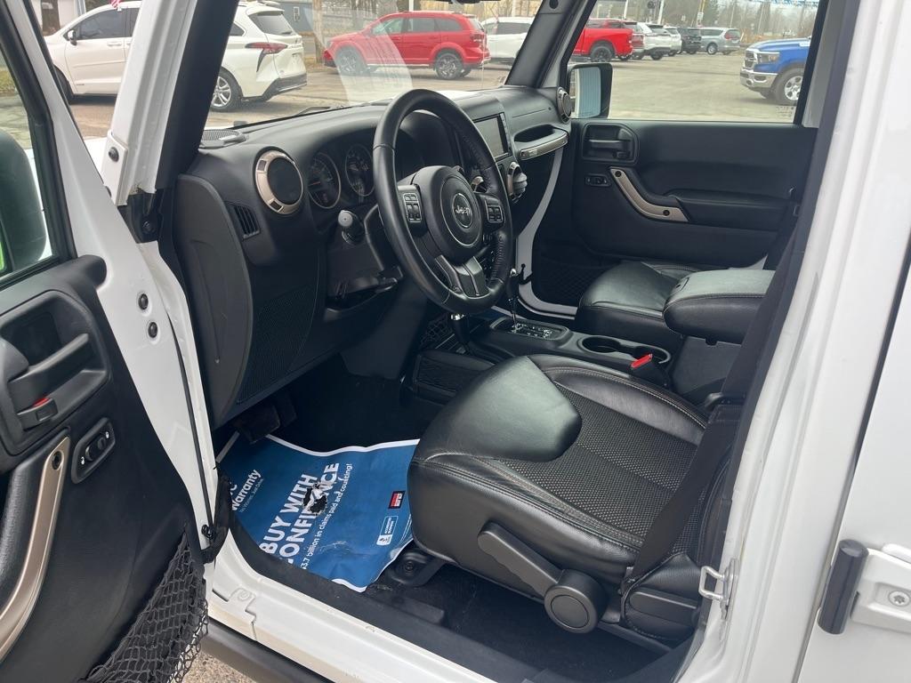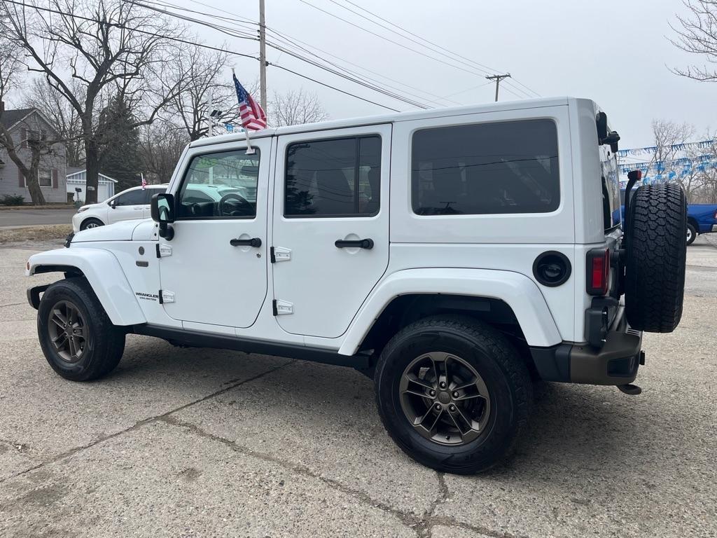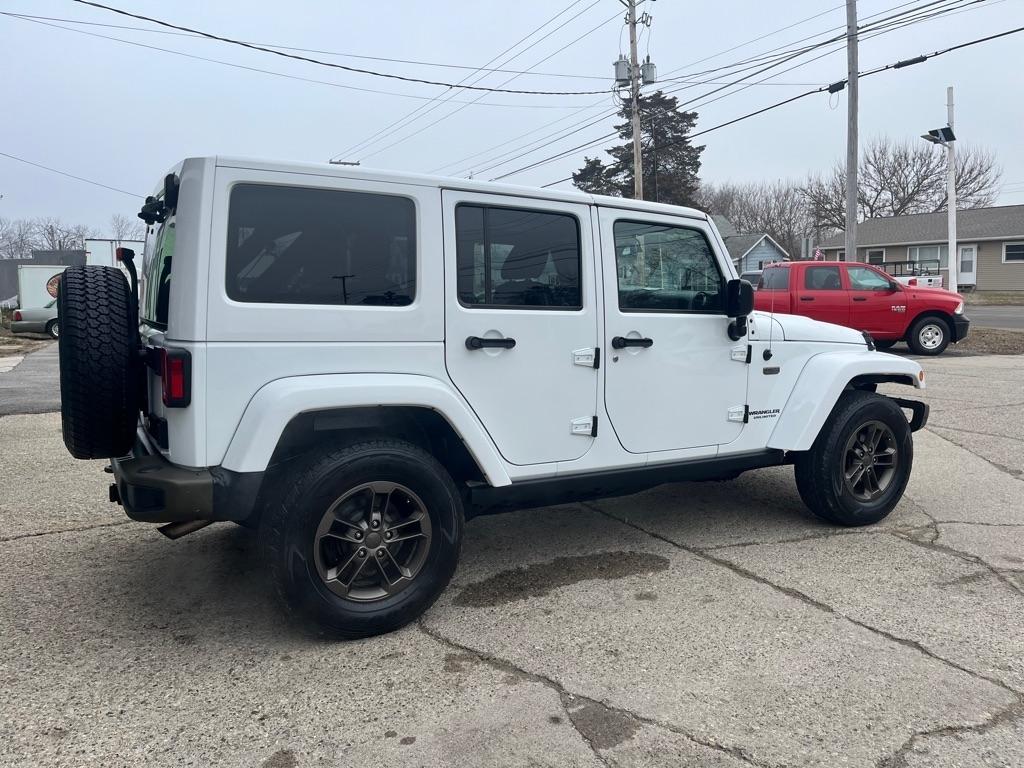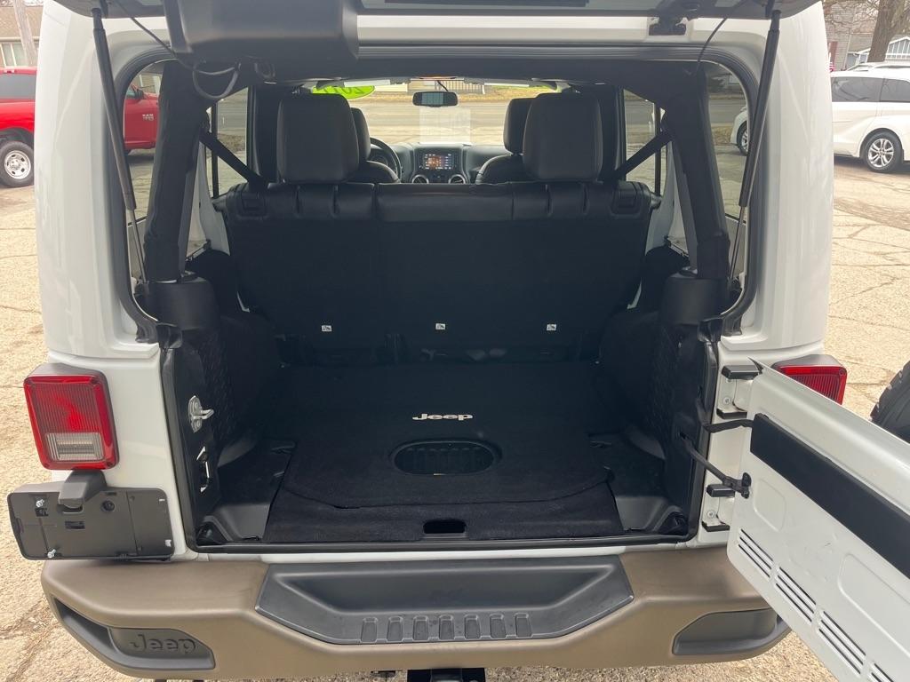2017 JEEP WRANGLER UNLIMITED SAHARA 4X4 Exterior Color: Bright White Clear Coat Exterior Paint Interior Color: Black Interior Color Interior: Leather Seats with Ombre Mesh Inserts Engine: 3.6-Liter V6 24-Valve VVT Engine Transmission: 5-Speed Automatic TransmissionJeep 75th Anniversary Edition 24H $4,680 17-Inch x 7.5-Inch Bronze Aluminum Wheels P245/75R17 OWL On / Off-Road Tires Trac-Lokr Differential Rear Axle,Bronze Steel Front Bumper,Bronze Steel Rear Bumper Rock Rails,Bronze 2 Front and 1 Rear Tow Hook,'75th Anniversary'' Badge,Body-Color Grille with Bronze Accents,Bronze ''Jeep'',Grille Badge,Bronze ''Trail Rated'' Badge,,Moroccan Sun Interior Accents,Moroccan Sun Instrument Panel BezelIP Grab Handle with 75th Anniversary Logo,Chrome / Leather-Wrapped Shift Knob,Connectivity Group Tire Pressure Monitoring DisplayUconnectr Voice Command with Bluetoothr Electronic Vehicle Information Center Heated Front Seats Power Dome Hood All-Weather Slush Mats Premium Black Sunriderr Soft Top Radio 430 Remote USB Port Sunriderr Soft Top Low Gloss Black Wrangler Decal Trailer Tow Group $495 Class II Receiver Hitch Trailer Tow with 4-Pin Connector Wiring 5-Speed Automatic Transmission $1,400 Hill Descent Control 3.73 Front / Rear Axle Ratio $695 Air Conditioning with Automatic Temperature Control $395 Freedom Topr Body-Color 3-Piece Hard Top $1,595 Delete Sunriderr Soft Top Freedom Panel Storage Bag Rear Window Defroster Rear Window Wiper / Wash Alpiner Pre